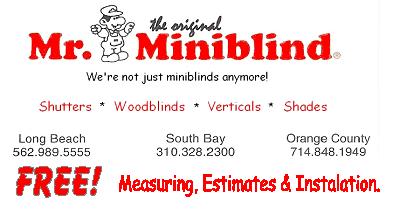 Providing Blinds, Shades, Window Treatments in California: Los Angeles, South Bay, Redondo Beach, Torrance, Palos Verdes, Manhattan Beach, Hermosa Beach, Long Beach. Free Measuring, Estimate, Installation. Long Beach (562) 989-5555 - South Bay (310) 328-2300 - Orange County (714) 848-1949
